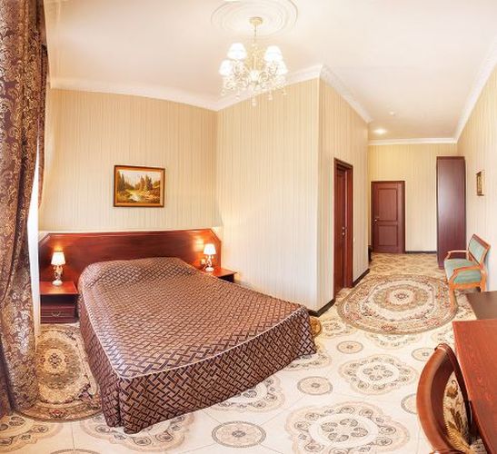 Номер общей площадью от 30 кв.м. Номер рассчитан на двух человек. Номер оснащен удобным гардеробом, письменным столом, кроватью с ортопедическим матрасом, холодильником с мини-баром, кондиционером, жк-телевизором с большой диагональю. Санузел оборудован душевой кабиной, феном и гигиеническим комплектом: полотенца, уютный банный махровый халат, шампунь, мыло, гель для душа, зубная паста и щетка, туалетная бумага, одноразовые тапочки, минеральная вода.